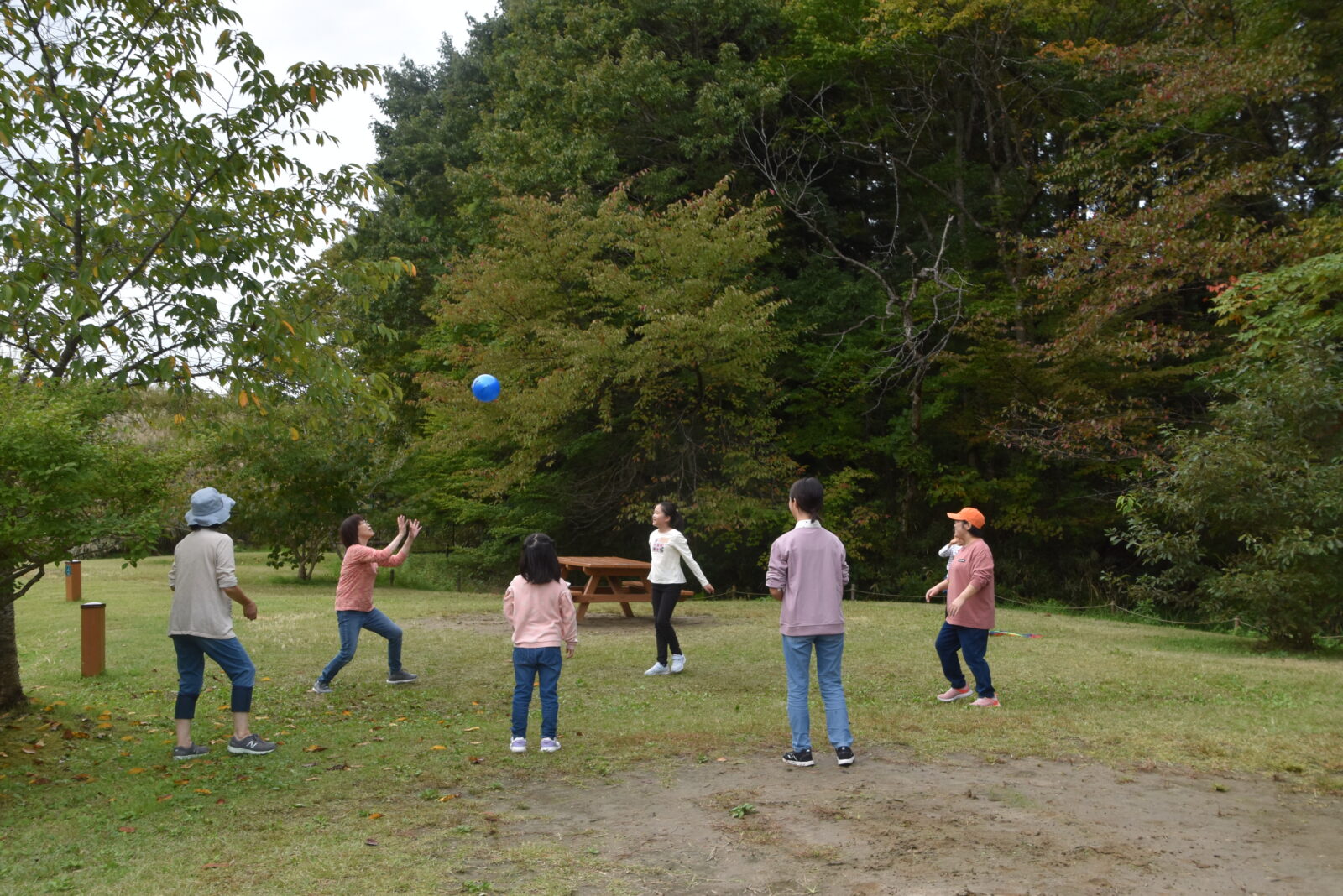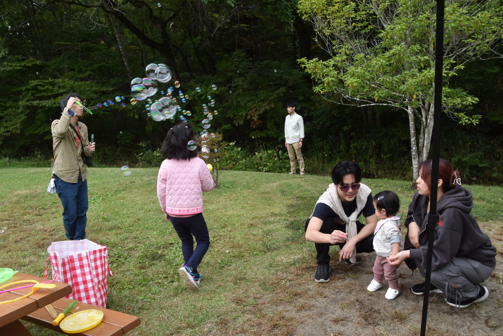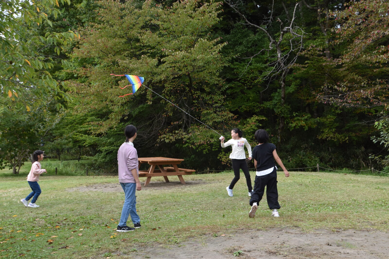 10月13日(月)、水の森キャンプ場でCSのデイキャンプが行なわれました。子ども11人、大人24人が参加し、開会礼拝の後は、みんなでゲームをしたり、食事をしたり、楽しい1日を過ごすことができました。午前中は雨模様だったので屋内での活動が中心でしたが、午後からは青空が広がり、子どもたちは公園でカイトを上げたり、フリスビーやバレーボール、しゃぼん玉などを楽しみ、元気いっぱい遊ぶことができました。お昼ごはんは、大人たちが総出で作った山形風の芋煮、焼きそば、フランクフルト、参加者が作ってきてくださったパンなど、おいしいもので満たされました。デザートは、マシュマロを炭火であぶってクラッカーで挟んだサンモア、甘く香ばしい味に子どもたちは大喜びでした。「かみさまからのプレゼント」をテーマに行われたCSデイキャンプ。神さまに見守られ、神さまと共に過ごすことができた1日でした。