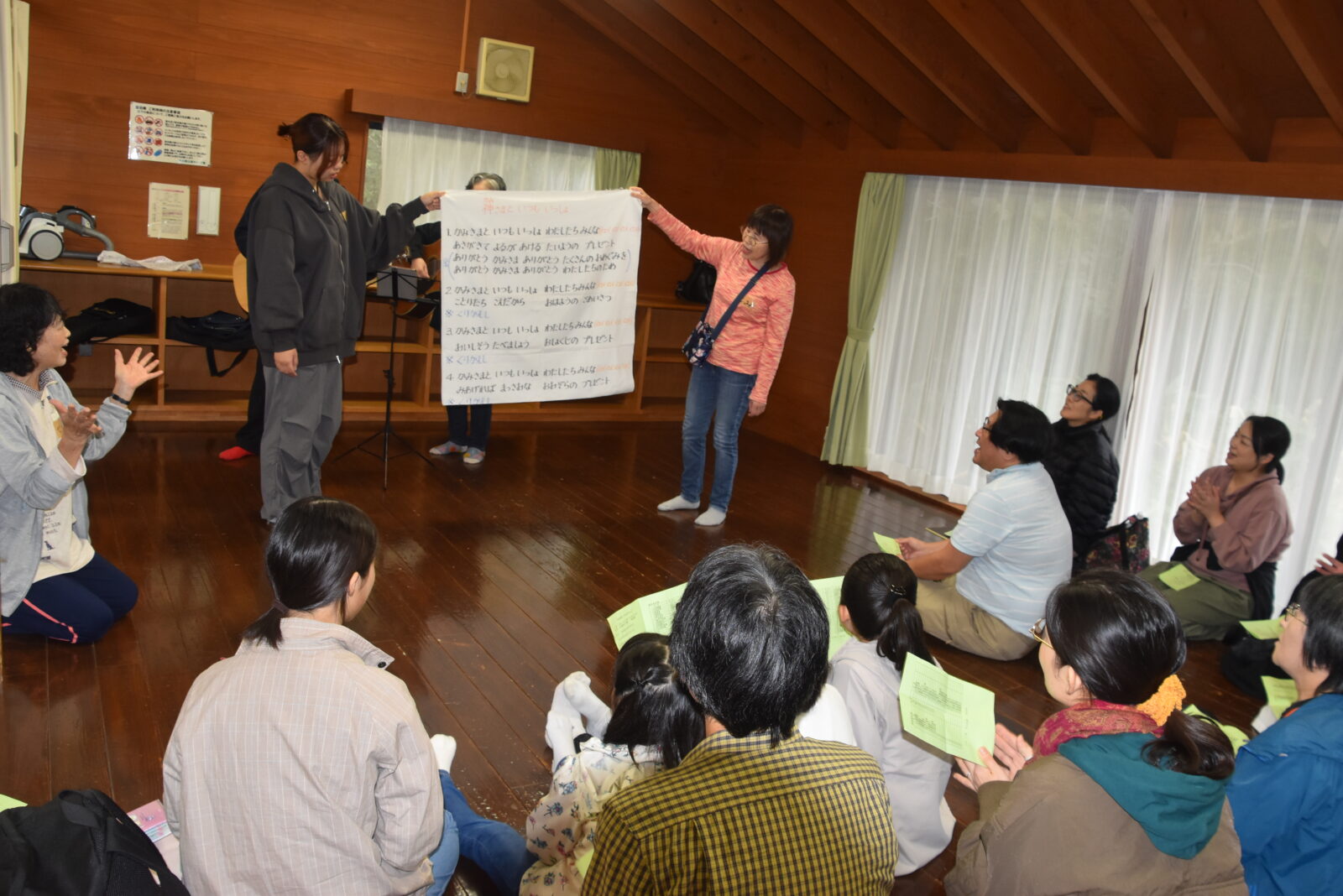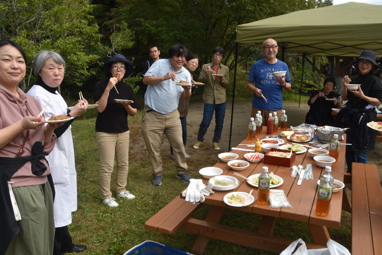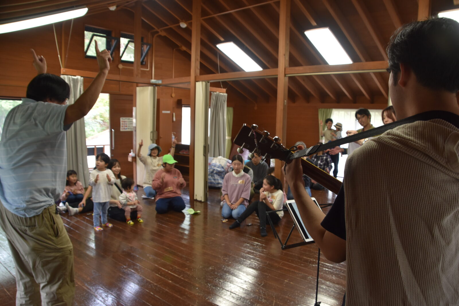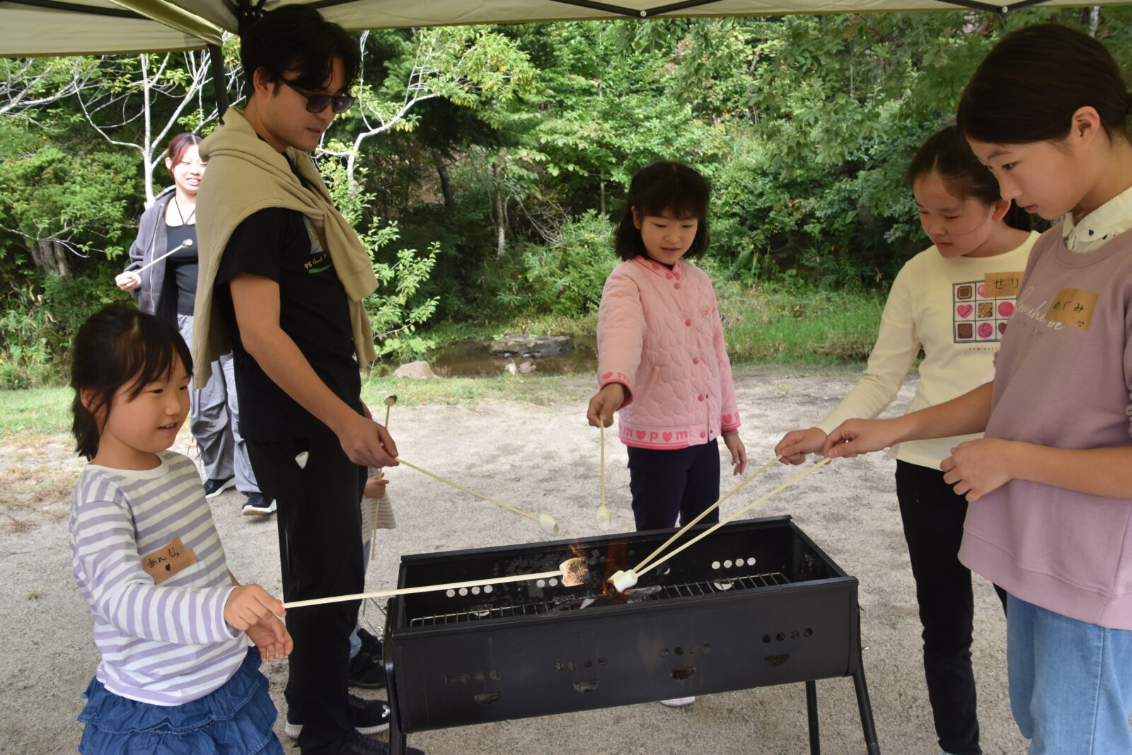 10月13日(月)、水の森キャンプ場でCSのデイキャンプが行なわれました。子ども11人、大人24人が参加し、開会礼拝の後は、みんなでゲームをしたり、食事をしたり、楽しい1日を過ごすことができました。午前中は雨模様だったので屋内での活動が中心でしたが、午後からは青空が広がり、子どもたちは公園でカイトを上げたり、フリスビーやバレーボール、しゃぼん玉などを楽しみ、元気いっぱい遊ぶことができました。お昼ごはんは、大人たちが総出で作った山形風の芋煮、焼きそば、フランクフルト、参加者が作ってきてくださったパンなど、おいしいもので満たされました。デザートは、マシュマロを炭火であぶってクラッカーで挟んだサンモア、甘く香ばしい味に子どもたちは大喜びでした。「かみさまからのプレゼント」をテーマに行われたCSデイキャンプ。神さまに見守られ、神さまと共に過ごすことができた1日でした。