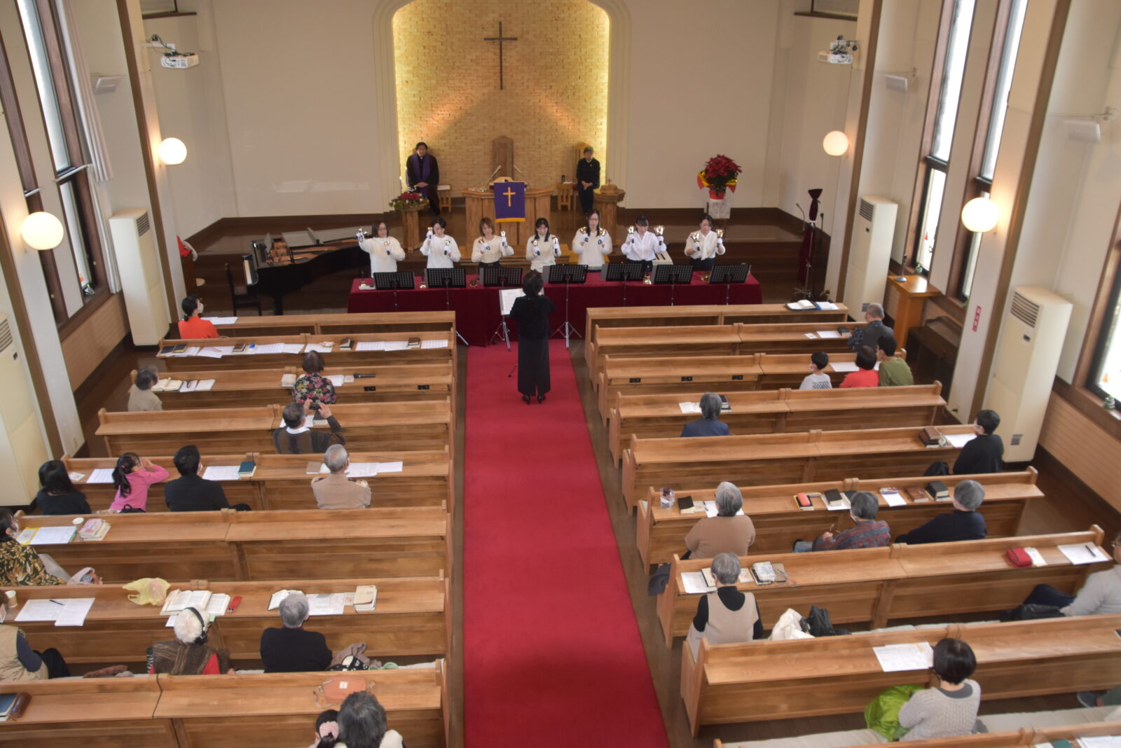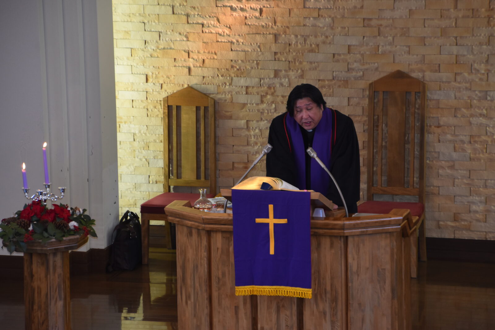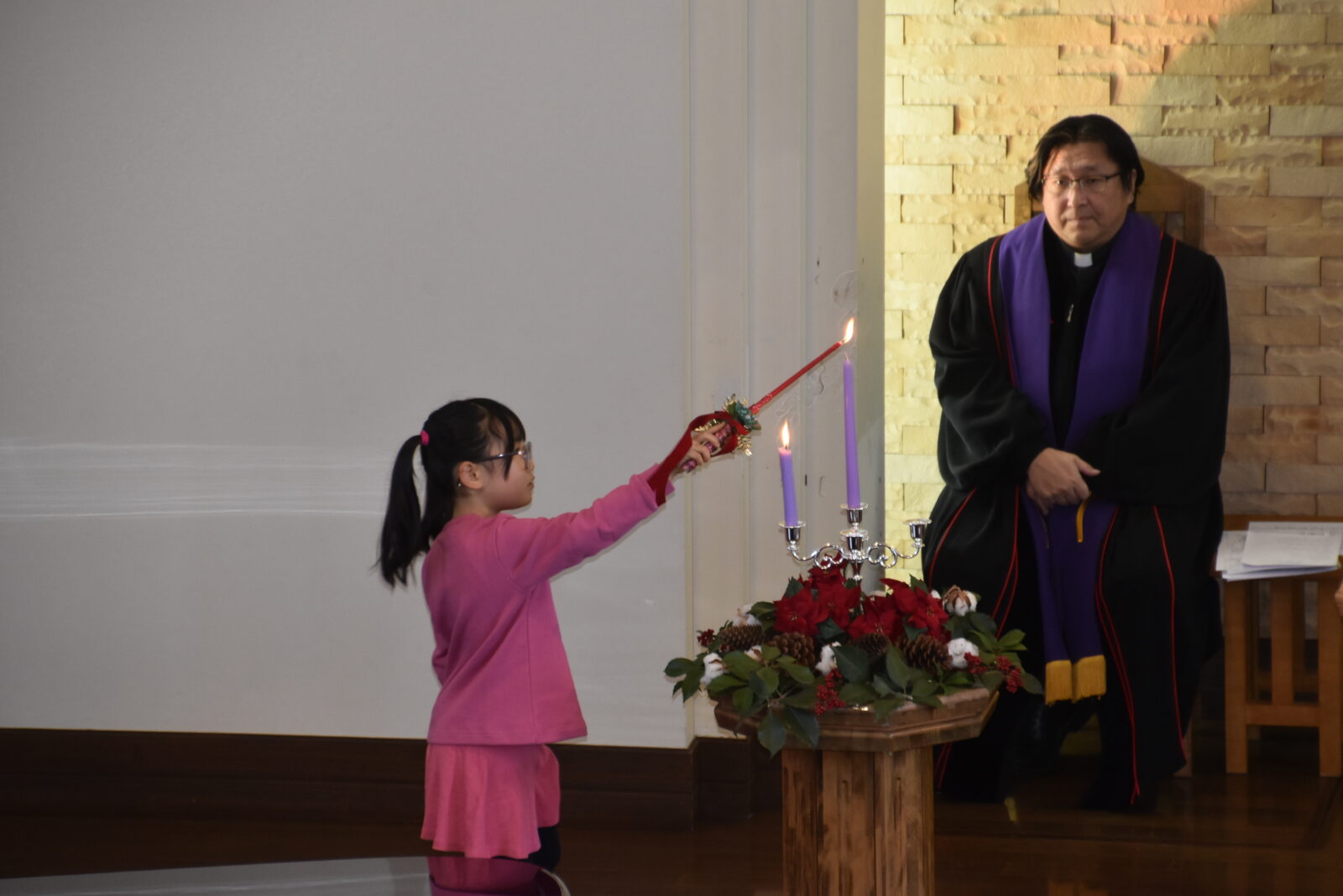 待降節も第二週に入り、CSの子どもたちによってアドベントクランツの2本目のろうそくに光が灯されました。礼拝では特別賛美として「つぼみハンドベルクワイア」によるハンドベル演奏があり、いよいよ主のご降誕を待ち望む気持ちが高まりました。また今日は、「創立116周年・復興80周年記念礼拝です。「苦難が恵みに」と題された野々川康弘牧師の説教では、当教会の弾圧と復興の歴史がコリント12:1~11に重ね合わせて語られました。「力は弱さの中で発揮される」というみ言葉の意味を心に刻み、仙台青葉荘教会の一員としての自覚をもって歩み続けてまいりたいと願っています。