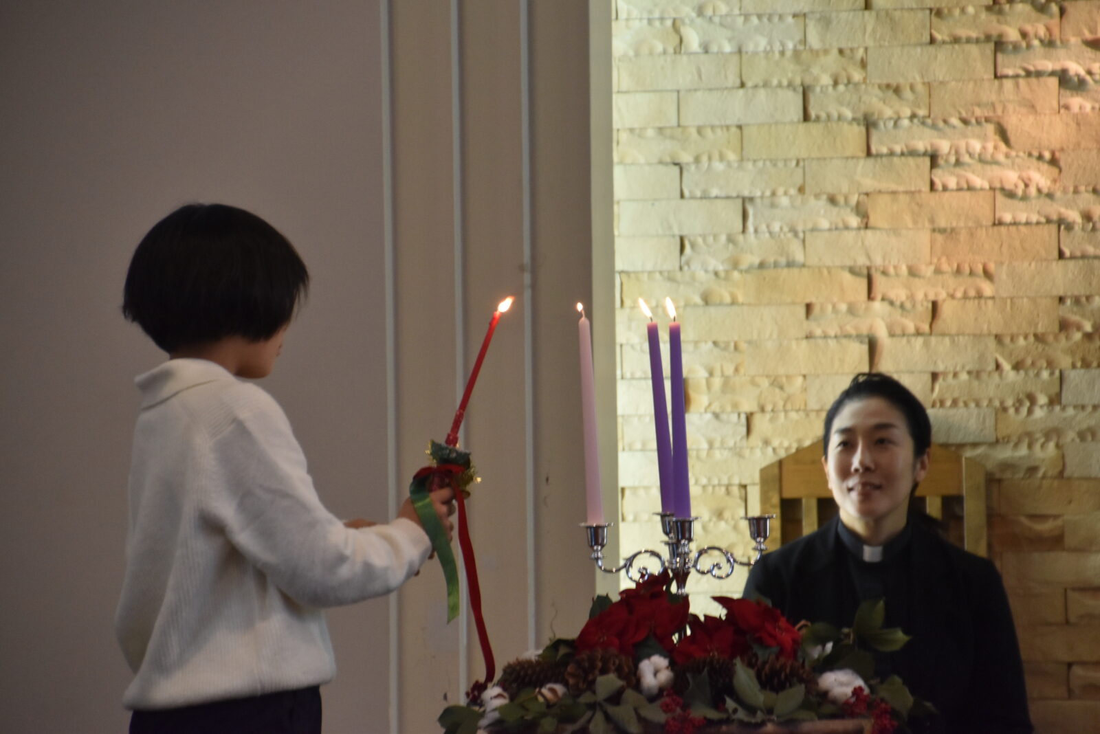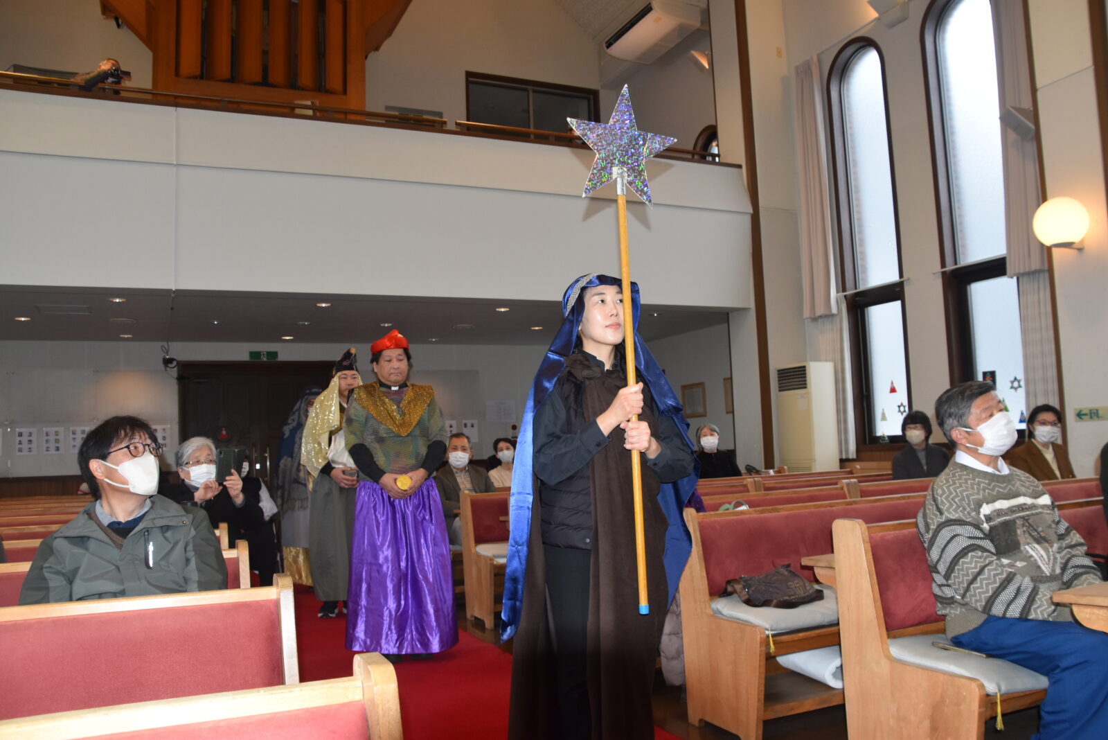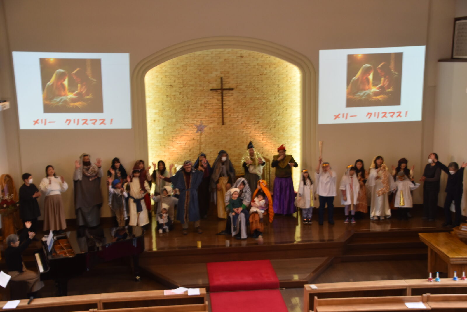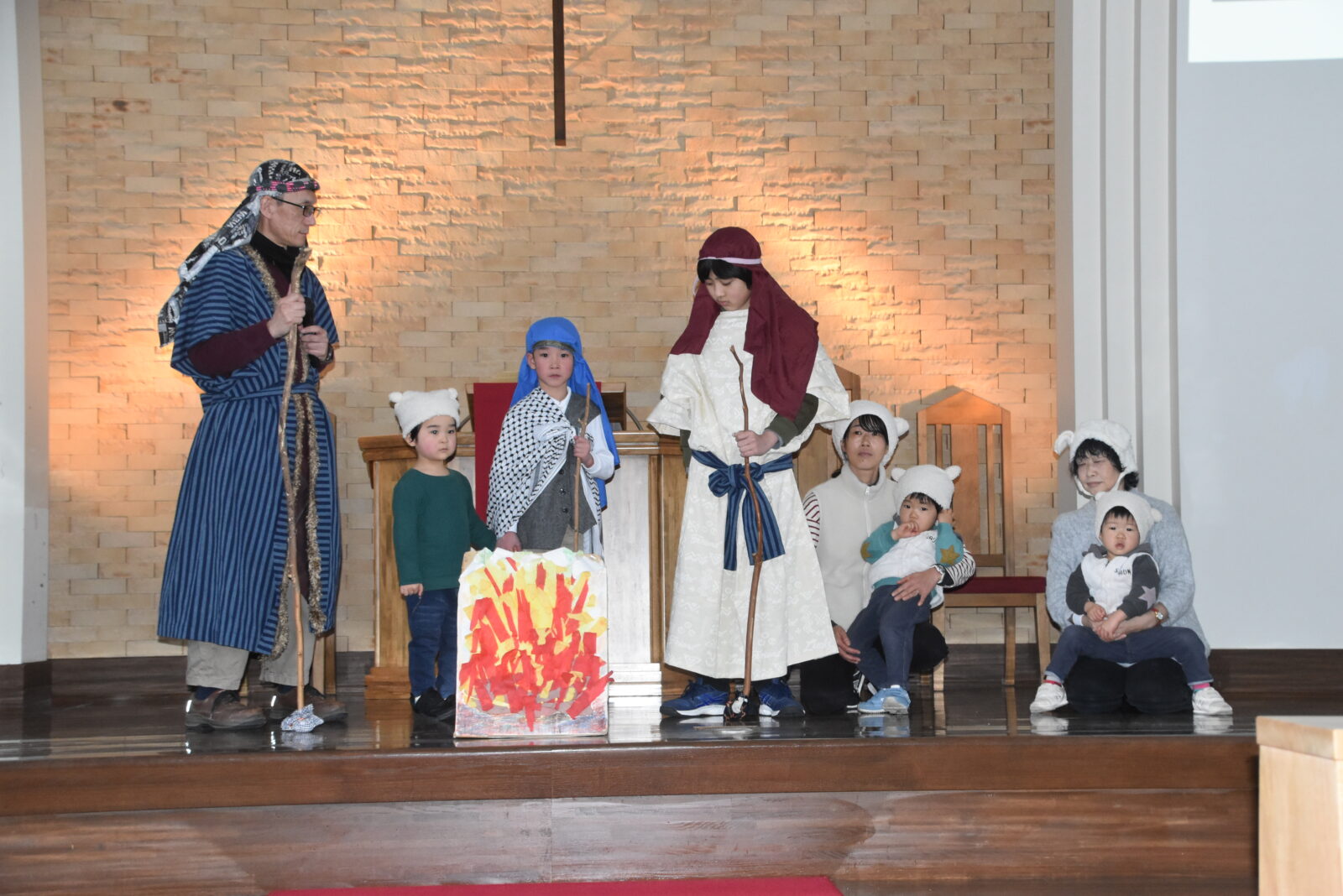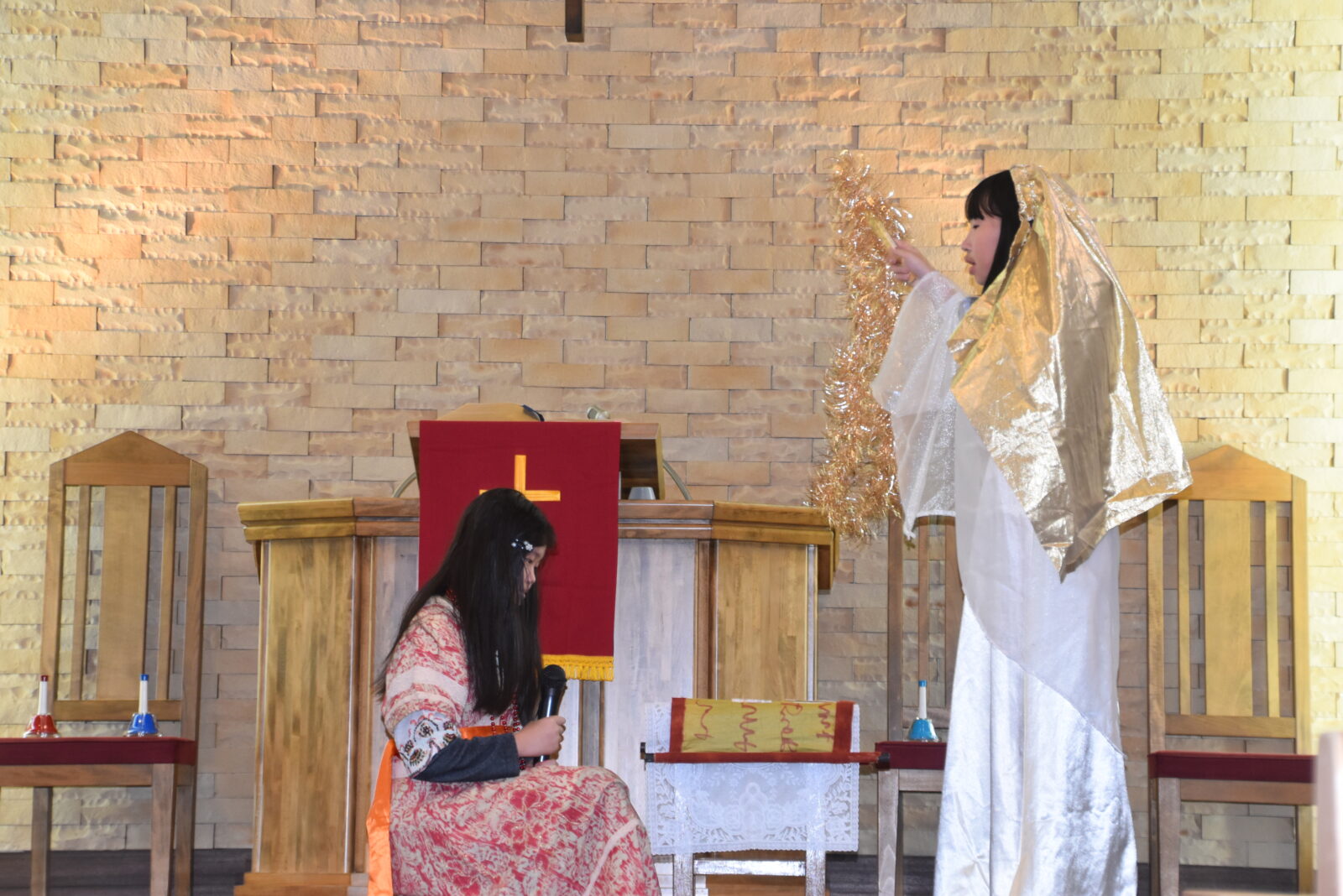 今日は、待降節第三主日礼拝。アドベントクランツには、教会学校の子どもたちによって3本目のろうそくに光が灯されました。 礼拝後には、キリストの降誕を祝う「ページェント」(降誕劇)が行なわれました。教会学校の子どもたちを中心に大人たちもいろいろな役に就き、また会堂の全員が合唱に加わることで全員参加のページェントを創り上げることができました。このページェントを通して、御子イエス様のご降誕の出来事を深く心に留めることができました。