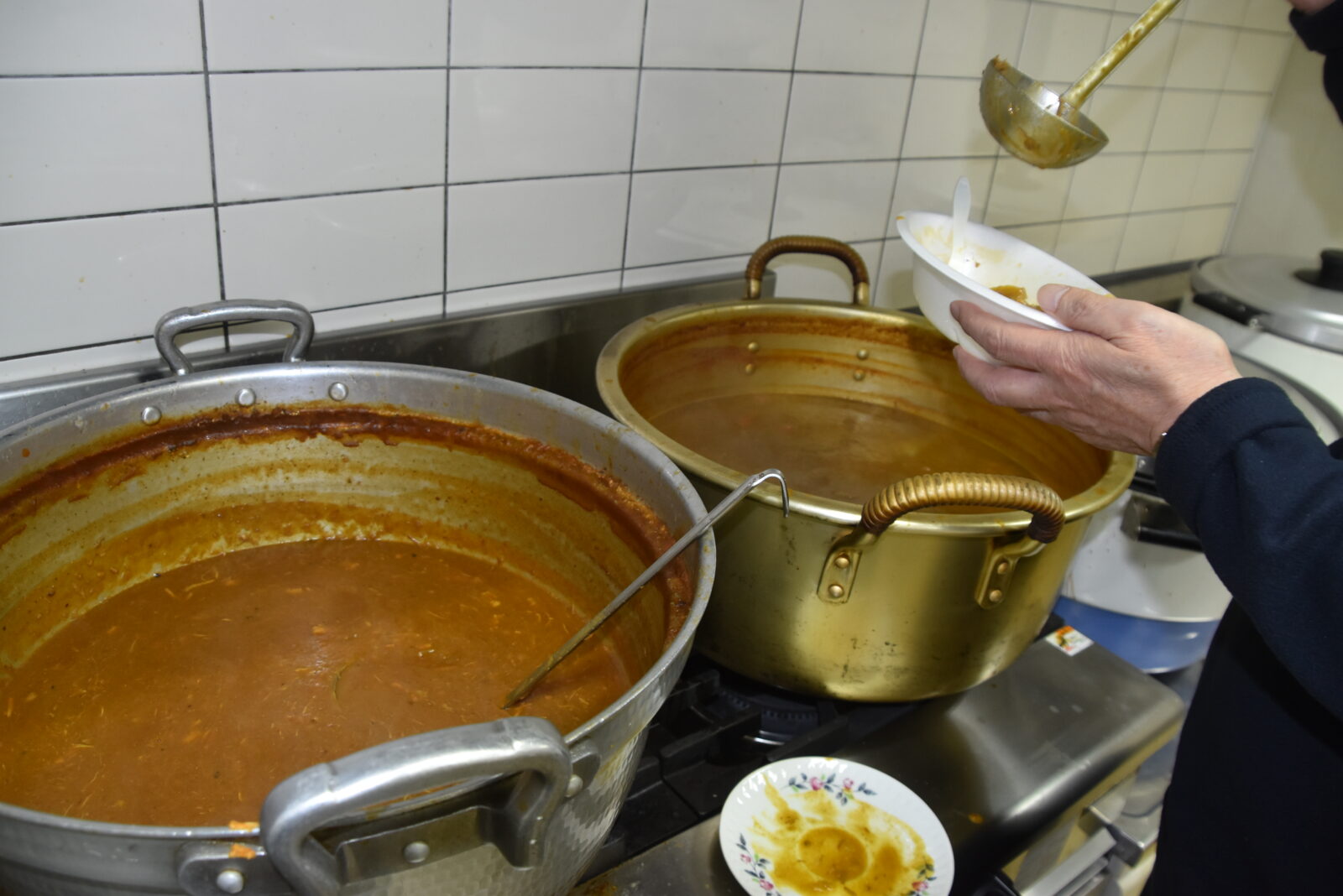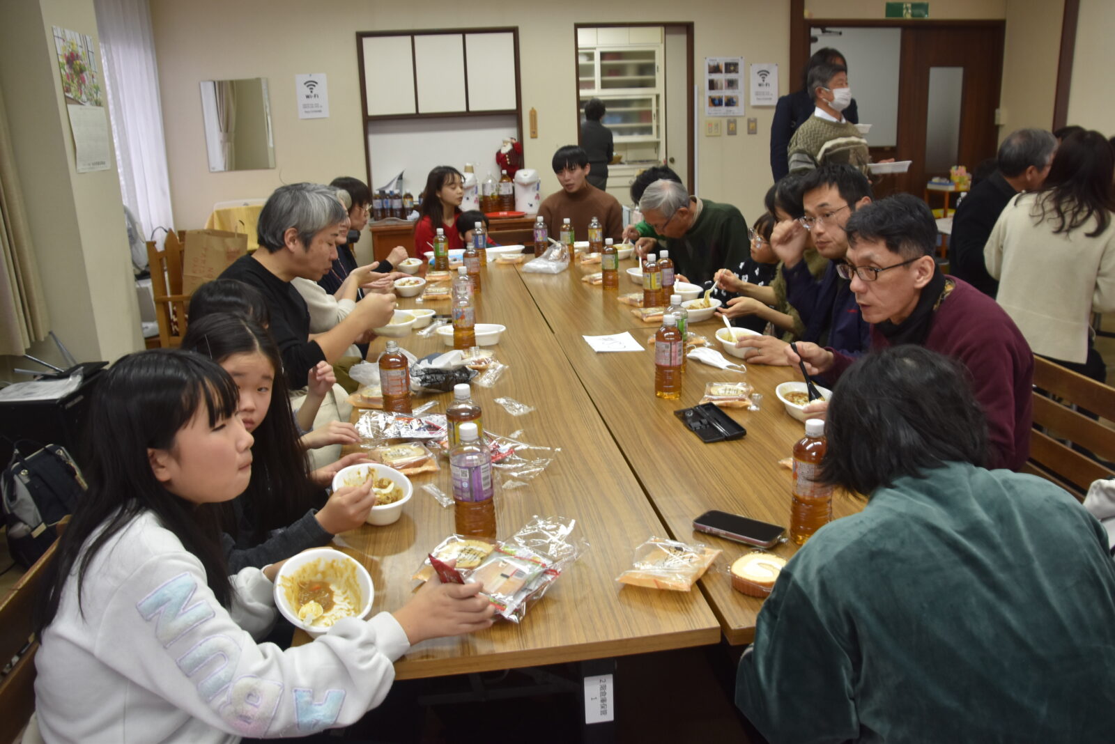 またページェントの後には、野々川牧師一家が3日前から仕込んだ特製カレーを皆でいただきました。今年のカレーは、甘口カレーと、海老からとった出汁に山椒が効いた中華風カレー。とても美味しくいただくことができました。ご馳走様でした。